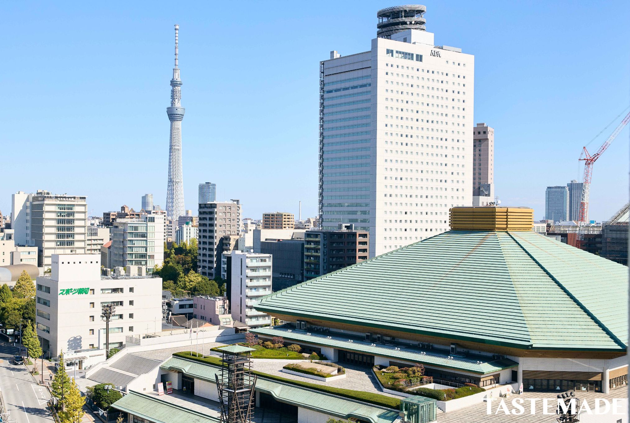 隅田川に架かる両国橋に由来している両国は、浅草から徒歩で30分ほどの距離にあり、見上げれば東京スカイツリーが見える、東京下町の雰囲気と現代的な雰囲気が融合している街。江戸時代には葛飾北斎や歌川広重らがこの土地に生きる人々を描いたことでも有名で、江戸時代の様子を展示している江戸東京博物館(2025年度まで休館中)や葛飾北斎の芸術を楽しめる、すみだ北斎美術館が点在しています。