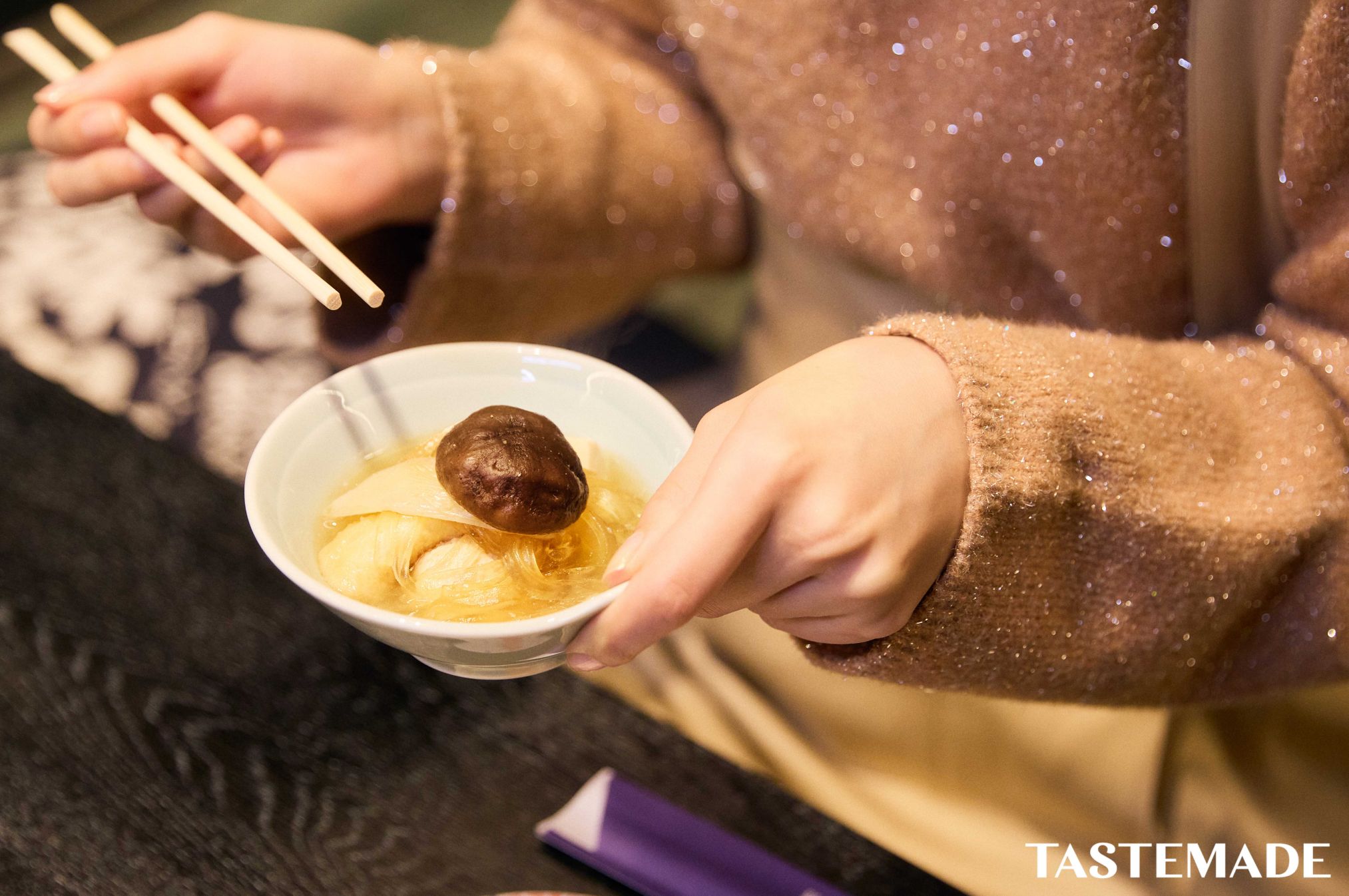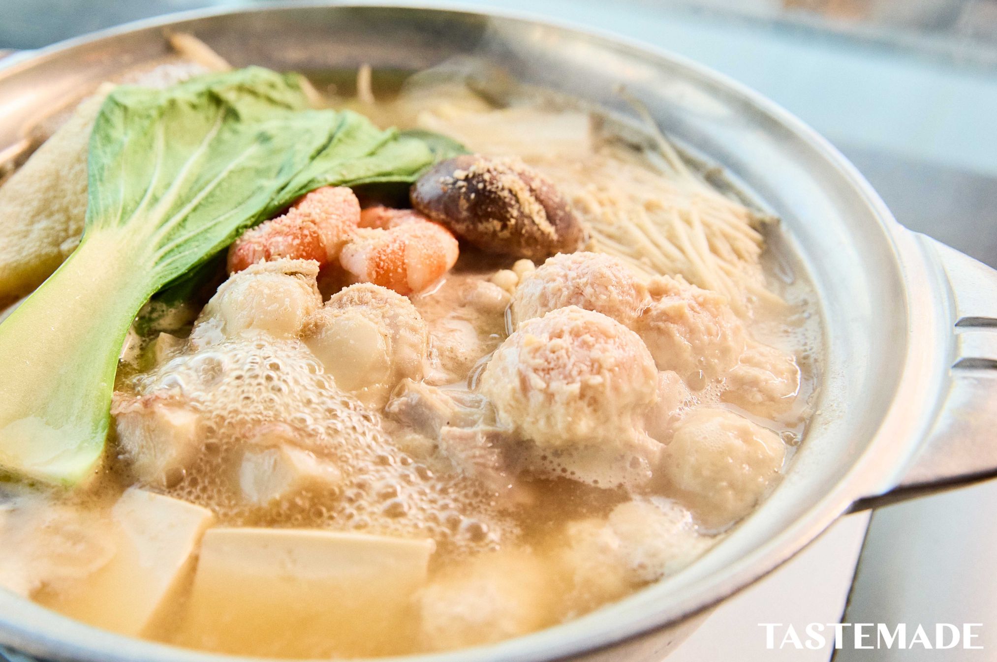 10分ほど煮込んだらちゃんこ鍋は完成。熱々の鶏ミンチを食べると、柚子こしょうの風味がふわりと感じられます。味はしっかりしているけど、さっぱりと食べられて、しつこくないのが特徴です。