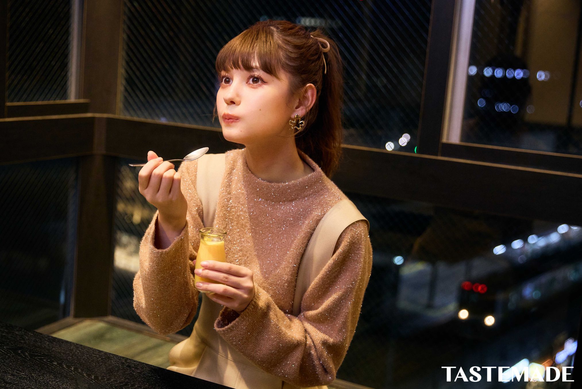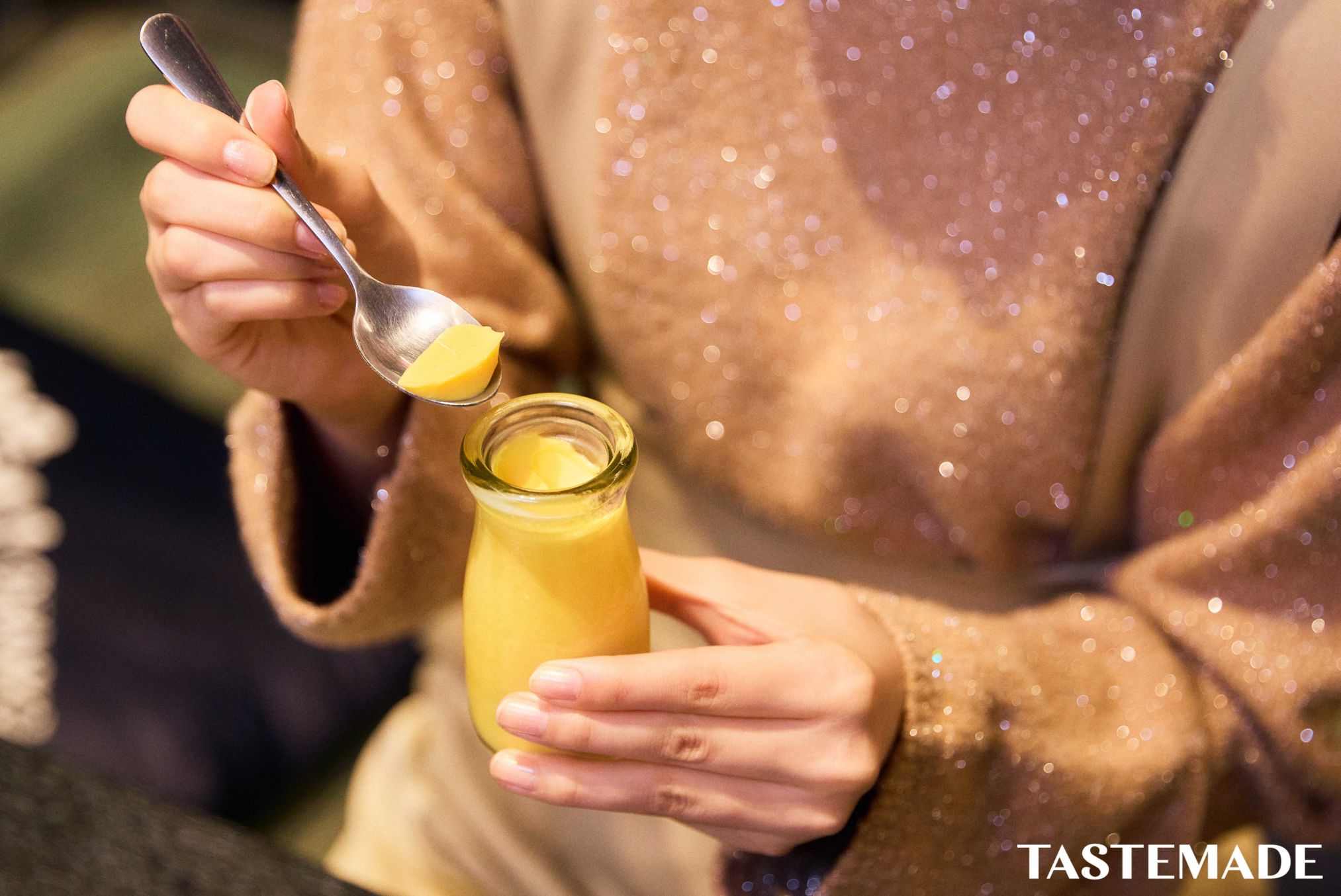 「マンゴープリン」をスプーンですくって一口食べると、そのプルプル食感から思わず笑みが。マンゴーの上品な甘さが口の中に広がっていきます。