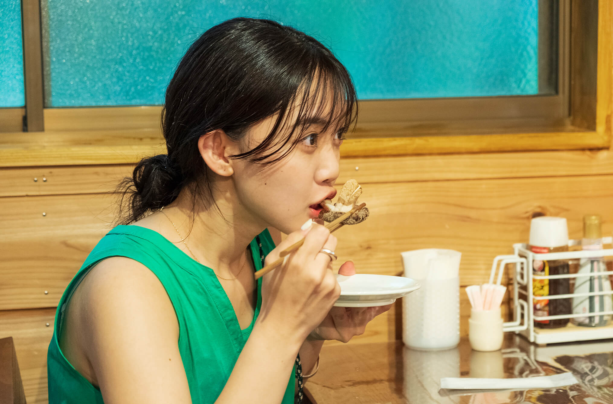次に3人が向かったのは、独自のブランド椎茸を栽培している「大竜(だいりゅう)ファーム」。ここで体験できるのは、島の潮風をたくさん浴びて育った「うみかぜ椎茸」の収穫体験。八丈島特有の潮風と高い湿度、豊富に湧き出るおいしい水で育った椎茸は、肉厚でジューシーなのが特徴。椎茸特有のくさみが少ないこともあり、どんな料理にも合わせられるとのこと。ファームには食堂が併設されており、自分で収穫した椎茸を実際に焼いて食べることができます。