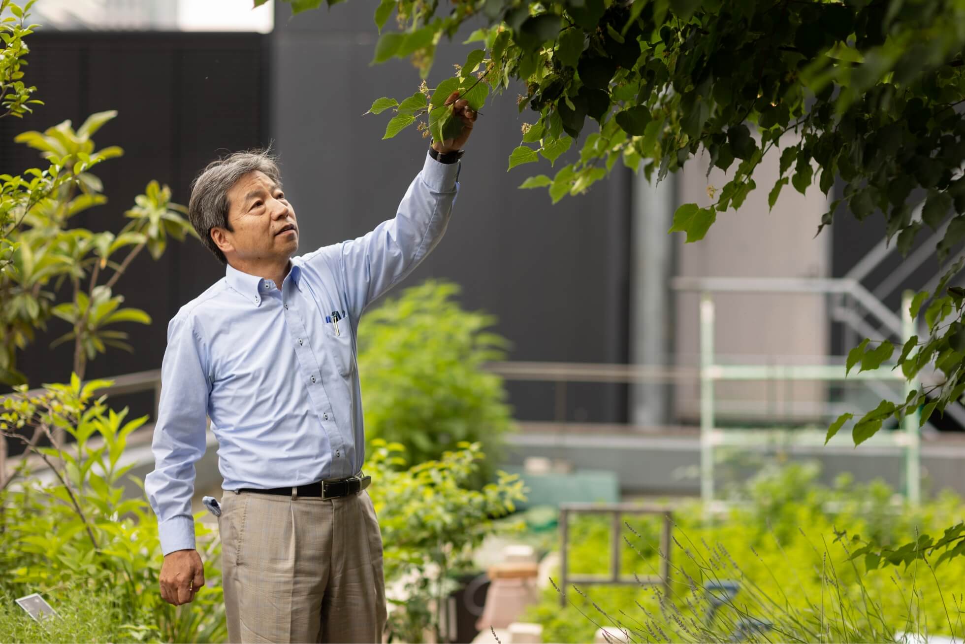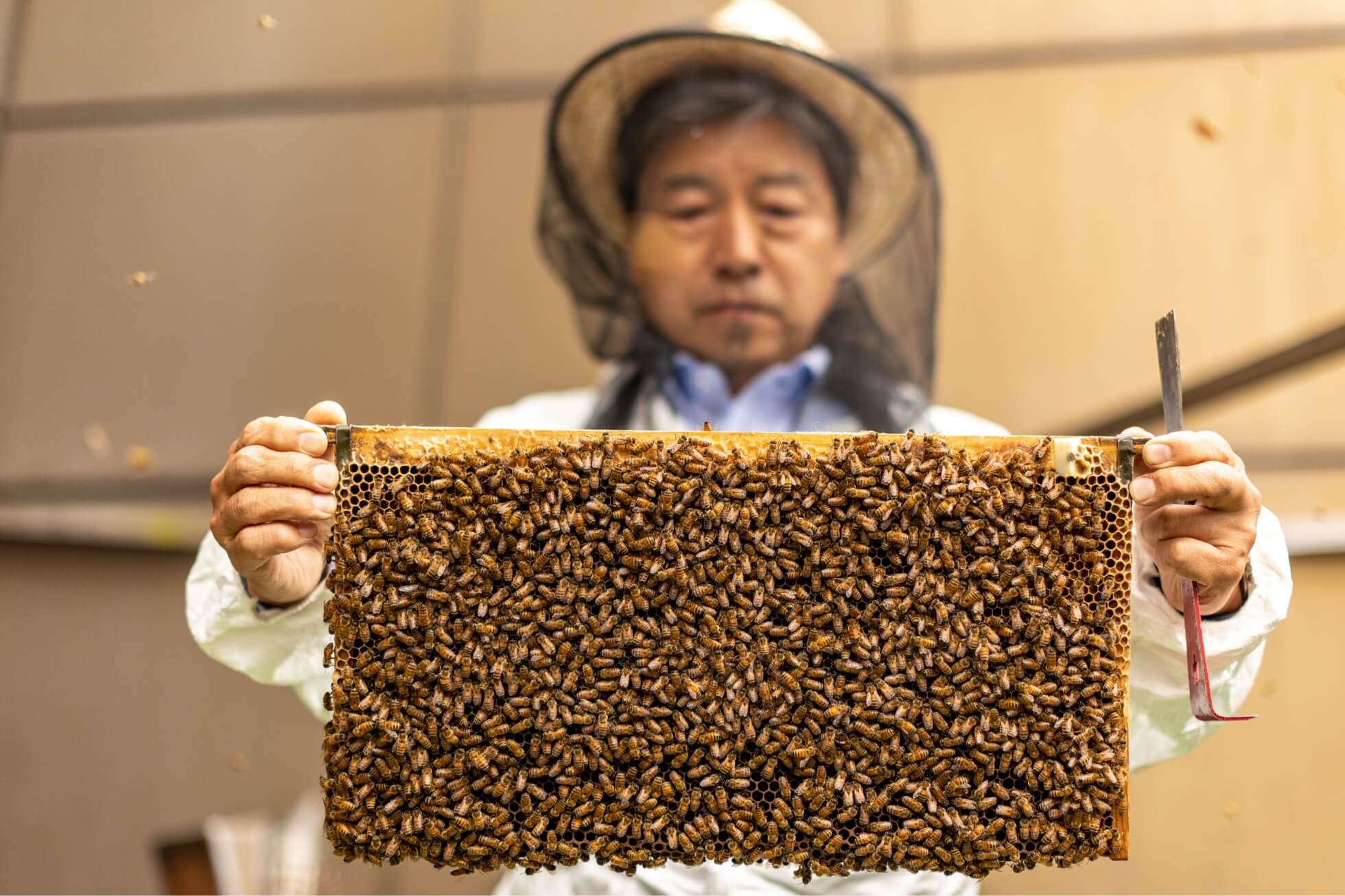 「銀座ミツバチプロジェクト」が行うサステナブルな活動のひとつに環境保全があります。「銀座ミツバチプロジェクトを始めてから、すべてが生態系でつながっていることをより意識するようになりました」と、プロジェクトの副代表である田中淳夫さんは、ミツバチの重要性を熱く語ります。ミツバチは花蜜を集めると同時に花粉を運び、受粉を促すことで植物の成長に寄与するなど、農業生産の現場においても、今や欠かせない存在になってきています。